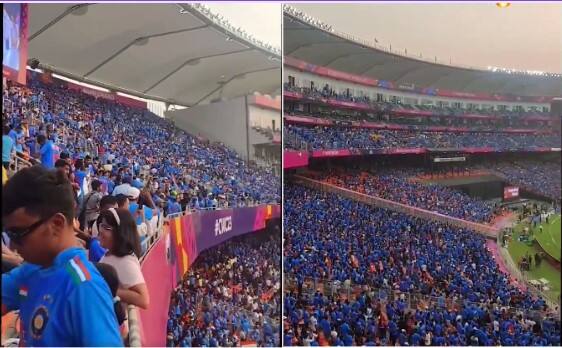IND vs AUS CWC 2023 Final: અમદાવાદના નરેન્દ્ર મોદી સ્ટેડિયમમાં રમાઈ રહેલી ભારત અને ઓસ્ટ્રેલિયા વચ્ચેની મેચમાં ઘણી રસપ્રદ ક્ષણો જોવા મળી હતી, જેમાં ભારતીય વાયુસેનાની સૂર્યકિરણ ટીમનો એર શો પણ સામેલ હતો. જો કે, મેચ દરમિયાન એકસાથે 'હનુમાન ચાલીસા'ના મંત્રોચ્ચારથી પ્રેક્ષકોએ મંત્રમુગ્ધ કર્યા હતા.