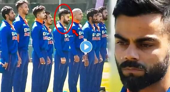 વિરાટ કોહલી (Virat Kohli) દક્ષિણ આફ્રિકા વિરુદ્ધ ત્રીજી વનડે દરમિયાન એક શરમજનક હરકત કરતા કેમેરામાં કેદ થઇ ગયો છે. મેચ પહેલા રાષ્ટ્રગાન દરમિયાન વિરાટ કોહલી ચિંગમ ચાવતો દેખાઇ રહ્યો હતો. આ ઘટનાનો વીડિયો હાલમાં ખુબ વાયરલ થઇ રહ્યો છે.
