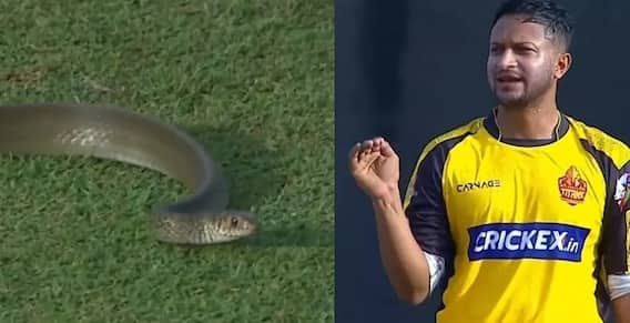 તમને જણાવી દઈએ કે શ્રીલંકાની ડોમેસ્ટિક ક્રિકેટ લીગ લંકા પ્રીમિયર લીગની બીજી મેચમાં મેદાન પર સાપ નીકળવાનો વીડિયો વાયરલ થઈ રહ્યો છે. બીજી ઇનિંગ દરમિયાન ચાલુ મેચમાં એક સાપ નિકળ્યો હતો. બાંગ્લાદેશના સ્ટાર ઓલરાઉન્ડર શાકિબ-અલ-હસને સૌપ્રથમ સાપ જોયો હતો. તેણે હાથ વડે સાપ બનાવીને ઈશારો કર્યો, ત્યારબાદ બધાએ સાપને જોયો હતો. વીડિયોમાં અમ્પાયર સાપને મેદાનમાંથી બહાર કરતા જોવા મળે છે.