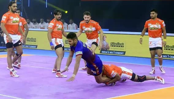 Pro Kabaddi League 2021-22, Dabang Delhi KC vs Gujrat Giants: બેંગલુરુના શેરાટોન ગ્રાન્ટ વ્હાઇટફિલ્ડમાં રમાયેલી પ્રો કબડ્ડી લીગની 13મી મેચમાં દબંગ દિલ્હી કેસી અને ગુજરાત જાયન્ટ્સની મેચ ટાઇ રહી હતી. દિલ્લી તરફથી નવીન કુમારે 11 રેડ પોઇન્ટ હાંસલ કર્યા હતા અને તે સતત ત્રીજી મેચમાં સુપર રેડ પુરી કરવામાં સફળ રહ્યા હતા. દિલ્હીની ડિફેન્સ આજે પુરી રીતે નિષ્ફળ રહી હતી. બીજી તરફ ગુજરાત જાયન્ટ્સ તરફથી રાકેશ રનવાલે નવ પોઇન્ટ હાંસલ કર્યા તો રાકેશ અને સુનિલ કુમારે 4-4 પોઇન્ટ હાંસલ કર્યા હતા આ ટાઇ સાથે દબંગ દિલ્લી પોઇન્ટ ટેબલમાં 13 પોઇન્ટ્સ સાથે પ્રથમ સ્થાન પર પહોંચી ગઇ છે જ્યારે ગુજરાત જાયન્ટ્સ ત્રીજા સ્થાન પર છે.