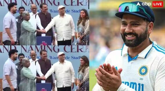 Rohit Sharma Stand In Wankhede Stadium: મુંબઈના વાનખેડે સ્ટેડિયમ ખાતે રોહિત શર્મા સ્ટેન્ડનું ઉદ્ઘાટન કરવામાં આવ્યું છે. આ પ્રસંગે મહારાષ્ટ્રના મુખ્યમંત્રી દેવેન્દ્ર ફડણવીસ અને એનસીપી-એસસીપીના વડા શરદ પવાર હાજર રહ્યા હતા. રોહિત શર્માએ પોતાના માતા-પિતાને સ્ટેજ પર બોલાવીને રોહિત શર્મા સ્ટેન્ડનું ઉદ્ઘાટન કર્યું હતું.