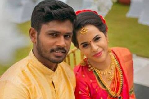 કેરલાના રણજી ટીમના સભ્ય અને ઇન્ડિયન પ્રીમિયર લીગમાં રાજસ્થાન રૉયલ્સના આ 24 વર્ષીય વિકેટકીપર બેટ્સમેને તાજેતરમાં જ ગર્લફ્રેન્ડ ચારુલત્તા સાથે પાંચ વર્ષના લાંબા સંબંધને લગ્નબંધનમાં પરિવર્તિત કરી દીધુ છે. સંજુએ પારંપરિક પીળો કુર્તો અને ધોતી પહેરી હતી જ્યારે ચારુલત્તા સાડી અને ઘરેણાં પહેર્યા હતા.