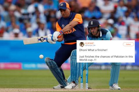 નવી દિલ્હીઃ વર્લ્ડકપમાં ઇંગ્લેન્ડની ટીમે ભારતને 31 રનથી હાર આપીને સેમિ ફાઇનલમાં પહોંચવાની પોતાની આશાને જીવંત રાખી છે. જોકે, મેચમાં હાર મળ્યા બાદ પણ ટીમ ઇન્ડિયાને કંઇજ ફરક પડ્યો નથી. 338 રનના વિશાળ લક્ષ્યનો પીછો કરવા ઉતરેલી ભારતીય ટીમ 50 ઓવરમાં 306 રન બનાવી શકી હતી. આ સાથે પાકિસ્તાનની વર્લ્ડકપની આશા પર પાણી ફરી વળ્યુ હતુ. મેચ બાદ પાકિસ્તાની ફેન્સ ધોનીને ટાર્ગેટ કરીને ટ્રૉલ કરી રહ્યાં હતાં, જ્યારે ભારતીય ફેન્સ ધોનીને હીરો ગણાવી રહ્યાં હતાં. ઇન્ડિયન ફેન્સે પાકિસ્તાનના વર્લ્ડકપ અભિયાનને ફિનિશ કરનારો બેસ્ટ ફિનિશર ગણાવ્યો હતો.