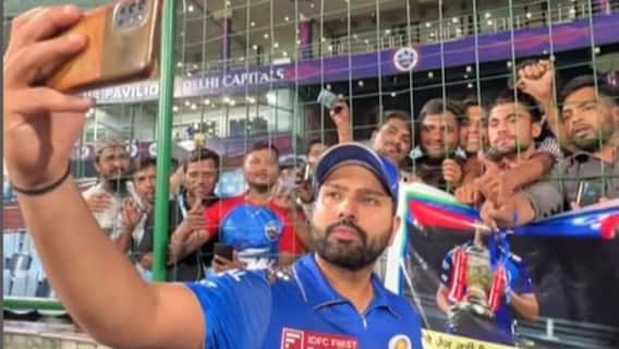 Rohit Sharma Selfi With Fans : ઇન્ડિયન પ્રીમિયર લીગ 2023 (IPL 2023)માં મંગળવારે મુંબઇ ઇન્ડિયન્સને (MI) પહેલી જીત મળી, તેને દિલ્હી કેપિટલ્સ (DC)ને 6 વિકેટથી હરાવ્યુ, અરુણ જેટલી સ્ટેડિયમમાં રમાયેલી આ મેચનુ પરિણામ છેલ્લા બૉલ પર સામે આવ્યુ હતુ. મુંબઇ ઇન્ડિયન્સના કેપ્ટન રોહિત શર્માએ 5 વારની ચેમ્પીયન ટીમની જીતમાં મુખ્ય ભૂમિકા નિભાવી હતી. તેને 45 બૉલ પર 65 રન બનાવ્યા. 'હિટમેન' આ જીતથી ખુબ ખુશ થઇ ગયેલા રોહિત શર્માએ ખાસ અંદાજમાં જીતનો જશ્ન મનાવ્યો હતો, તેને ફેન્સ સાથે સેલ્ફી ક્લિક કરાવી હતી.