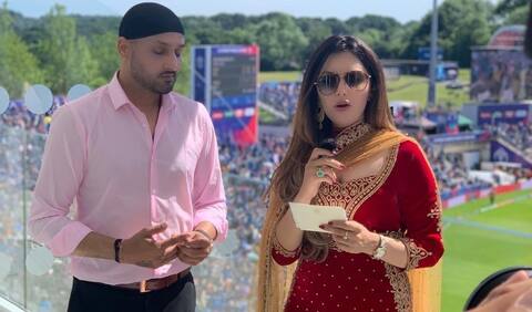 અફઘાનિસ્તાન સામેની મેચમાં હરભજન સિંહ એક મહિલા એન્કરને ઈન્ટરવ્યૂ આપે છે જેની તસવીર વાયરલ થઈ રહી છે.