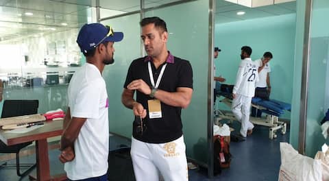 ધોનીએ ટીમ ઇન્ડિયાના ડ્રેસિંગ રૂમમાં આવીને યુવા ખેલાડી શાહબાઝ નદીમને ક્રિકેટની ટિપ્સ આપી હતી. બન્ને વચ્ચેની વાતચીતની આ તસવીર છે