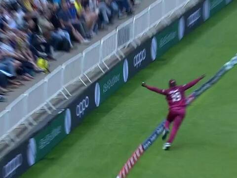નવી દિલ્હીઃ વર્લ્ડ કપ 2019ની 10મી મેચ નોટિંઘમમાં વેસ્ટઈન્ડીઝ સામે ઓસ્ટ્રેલિયા વચ્ચે રમાઈ હતી. જેમાં ઓસ્ટ્રેલિાના બેટ્સમેન સ્ટીવ સ્મિથે ટીમ વતી સારું પ્રદર્શન કર્યું હતું અને પોતાની ટીમને સંકટમાંથી બહાર કાઢવામાં મહત્વની ભૂમિકા ભજવી હતી. સ્મિથનો કેચ ઓશાને થોમસના બોલ પર શેલ્ડન કોટરેલે બાઉન્ડ્રી પર ઝડપી પાડ્યો હતો. આ કેચને ટુર્નામેન્ટનો અત્યાર સુધીનો સૌથી શાનદાર કેચ ગણવામાં આવી રહ્યો છે. એક સમયે ઓસ્ટ્રેલિયાની 79 રનમાં 5 વિકેટ પડી ગઈ હતી પરંતુ સ્મિથે જોરદાર બેટિંગ કરી અને ઓસ્ટ્રેલિયાના 200 રનની પાર પહોંચાડી હતી. ચોથા નંબરે બેટિંગ કરવા ઉતરેલો સ્મિથ 249 રનના સ્કોર પર 7મી વિકેટ પડી હતી. 45મી ઓવરના બીજા બોલ પર સ્મિથનો કેચ કોટરેલે બાઉન્ડ્રી પર ઝડપી પાડ્યો હતો. સ્મિથે બેક્વર્ડ સ્ક્વાયર લેગ સાઈડમાં શોટ ફટકાર્યો હતો જેને દોડીને એક હાથે કોટરેલે કેચ કરી સ્મિથને આઉટ કર્યો હતો. આ કેચ પકડતાની સાથે પેવેલિયનમાં બૂમાબૂમ થઈ ગઈ હતી.