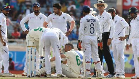 સાઉથ આફ્રિકાના આ બેટ્સમેનના હેલ્મેટ પર વાગ્યો ઉમેશ યાદવનો બાઉન્સર, પિચ પર જ બેસી ગયો ને પછી.....