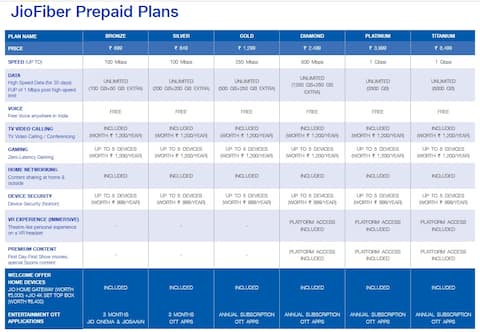 નવી દિલ્હીઃ દુનિયાના સૌથી મોટા મોબાઇલ ડેટા નેટવર્ક જિઓએ આજે ભારતના 1600 શહેરોમાં ફાઇબર ટૂ ધ હોમ સર્વિસ જિઓ ફાઇબર શરુ કરવાની જાહેરાત કરી છે. ભારતમાં અત્યારે એવરેજ ફિક્સ્ડ લાઇન બ્રોડબેન્ડની સ્પીડ લગભગ 25 Mbps છે. અમેરિકા જેવી વિકસિત અર્થવ્યવસ્થામાં પણ લગભગ 90Mbps જ છે. જિઓ ફાઇબર ભારતની પહેલી 100 ટકા ઓલ-ફાઇબર બ્રોડબેન્ડ સર્વિસ છે. તેની સ્પીડ 100 Mbpsથી શરુ થઇને 1Gbps સુધી જશે. આ દેશની સૌથી વધુ ફાસ્ટ ચાલનારી ઇન્ટરનેટ સર્વિસ પણ છે. આગળ વાંચો કંપનીએ કેટલા પ્લાન કર્યા લોન્ચ.... જિઓ ફાઇબરના 100Mbps સ્પીડ વાળા ડેટા પ્લાનની કિંમત 699 રુપિયા છે. જ્યારે તેના મોંઘા 1 Gbps ડેટા સ્પીડની કિંમત 8499 રુપિયા છે. નોંધનીય છે કે, હાલમાં વેલકપ ઓફર અંતર્ગત દરેક પ્લાન સાથે કોઈને કોઈ વસ્તુ ફ્રીમાં આપવામાં આવી રહી છે. 699 રુપિયા વાળો પ્લાન‘બ્રોન્ઝ પ્લાન’છે. તેમાં તમને 100Mbpsની સ્પીડ મળશે. આ પ્લાનમાં 100gb+50gb એકસ્ટ્રા ડેટા મળશે. આ બેસ પ્લાનમાં દેશભરમાં ફ્રી વોઇસ કોલિંગ, TV વીડિયો કોલિંગ, ગેમિંગ સપોર્ટ વગેરે જેવી સુવિધા મળશે. સિલ્વર પ્લાન 849 રુપિયાનો છે. જેમાં તમને 200gb+200gb એકસ્ટ્રા ડેટા મળશે. સિલ્વર પ્લાનમાં પણ તમને 100Mbpsની સ્પીડ મળશે. આ પ્લાનમાં દેશભરમાં ફ્રી વોઇસ કોલિંગ, TV વીડિયો કોલિંગ અને કોન્ફ્રેંસિંગ, હોમ નેટવર્કિંગ અને ડિવાઇસ સિક્યોરિટી જેવી સુવિધા મળશે. આ પછી ગોલ્ડ અને ડાયમંડ પ્લાન છે. ગોલ્ડ પ્લાનમાં 500Mbpsની સ્પીડ મળશે. જ્યારે ડાયમંડ પ્લાનમાં 500Mbpsની સ્પીડ મળશે. ગોલ્ડ પ્લાનમાં તમને 500gb+250gb એકસ્ટ્રા ડેટા મળશે. જ્યારે ડાયમંડમાં 1250gb+250gb ડેટા મળશે. ગોલ્ડ પ્લાનની કિંમત 1299 રુપિયા છે અને ડાયમંડ પ્લાનની કિંમત 2499 રુપિયા છે. ગોલ્ડ પ્લાનમાં પણ દેશભરમાં ફ્રી કોલિંગ, TV વીડિયો કોલિંગ અને કોન્ફ્રેંસિંગ, હોમ નેટવર્કિંગ અને ડિવાઇસ સિક્યોરિટી જેવી સુવિધા મળશે. આવી જ રીતે 1Gbpsની સ્પીડ વાળો પ્લેટિનમ પ્લાન 3999 રુપિયામાં લઈ શકો છો. તેમાં તમને 2500gb ડેટા મળશે. આ પ્લાનમાં દેશભરમાં ફ્રી કોલિંગ, TV વીડિયો કોલિંગ અને કોન્ફ્રેંસિંગ, હોમ નેટવર્કિંગ અને ડિવાઇસ સિક્યોરિટી જેવી સુવિધા મળશે. સાથે VR એક્સપિરિયન્સ અને પ્રીમિયમ કન્ટેટ સર્વિસ સપોર્ટ પણ મળશે. તેનો સૌથી મોંઘો પ્લાન ‘ટાઇટેનિયમ’ છે. આ પ્લાનમાં તમને 1Gbps સ્પીડ અને 5000gb અનલિમિટેડ ડેટા મળશે. આ પ્લાનમાં પણ પ્લેટિનમ પ્લાન જેવા દેશભરમાં ફ્રી કોલિંગ, TV વીડિયો કોલિંગ અને કોન્ફ્રેંસિંગ, હોમ નેટવર્કિંગ અને ડિવાઇસ સિક્યોરિટી જેવી સુવિધા મળશે. સાથે VR એક્સપિરિયન્સ અને પ્રીમિયમ કન્ટેટ સર્વિસ સપોર્ટ પણ મળશે.