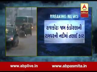 રાજકોટઃ ધોધમાર વરસાદના કારણે રામપરની નદીમાં કાર તણાઇ, જુઓ વીડિયો