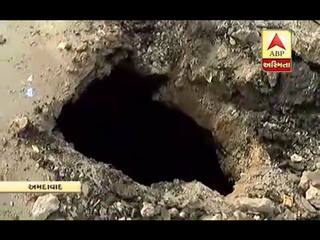 અમદાવાદઃ શિવરંજની ચાર રસ્તા પાસે BRTS કોરિડોરમાં પડ્યો ભૂવો, જુઓ વીડિયો