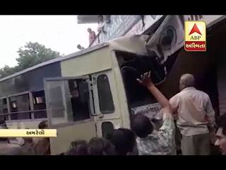 અમરેલીઃ પૂરપાટ આવતી એસ.ટી. બસ પાનની દુકાનમાં ઘૂસી ગઈ, જુઓ વીડિયો