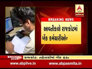 રાજકોટઃ મર્જરના વિરોધમાં બેન્ક કર્મચારીઓએ મંગળવારે આપ્યુ બંધનુ એલાન, જુઓ વીડિયો