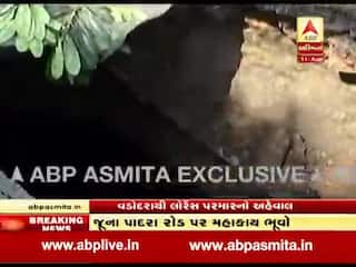 વડોદરાના જૂના પાદરા રોડ પર પડ્યો વિશાળ ભૂવો, વાહન ચાલકો પરેશાન, જુઓ વીડિયો
