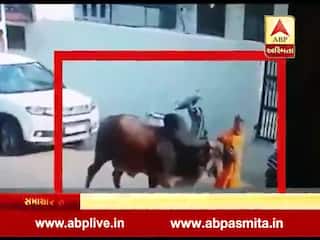વડોદરામાં આખલાએ રસ્તે ચાલતી મહિલાને અડફેટે લીધી, જુઓ વીડિયો