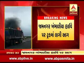 જામનગર: ખંભાળીયા હાઈવે પર ટ્રકમાં લાગી આગ, જુઓ વીડિયો