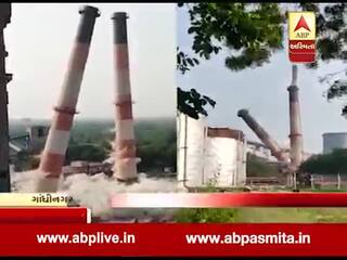 ગાંધીનગરઃ થર્મલ પાવરની ચીમની તોડી પડાઇ, જુઓ વીડિયો
