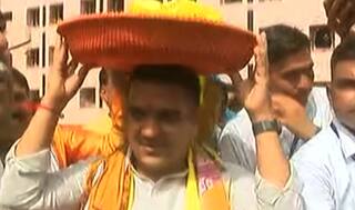 Ahmedabad Rathyatra 2022: માથે ધજાની ટોકરી લઈ હર્ષ સંઘવીએ મંદિર પર ફરકાવી ધજા