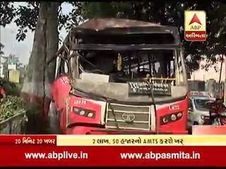 અમદાવાદઃ ઝાડ સાથે ટકરાઇ AMTS બસ, જુઓ વીડિયો