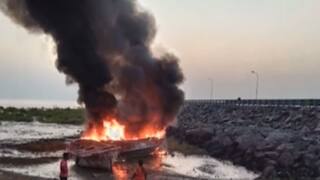 ભાવનગરના ઘોઘા બંદર પર લાંગરેલી બોટમાં લાગી આગ,જુઓ વીડિયો