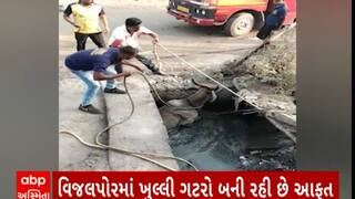 Navsari cow rescue : નવસારીના વિજલપોરમાં ખુલ્લી ગટરમાં ખાબકી ગાય