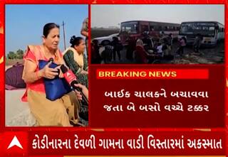 Gir Somnath | બે એસટી બસ વચ્ચે અકસ્માત સર્જાયો છે. બાઈક ચાલકને બચાવવા જતા બે બસો વચ્ચે ટક્કર થઈ હતી.