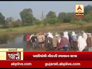 અરવલ્લીઃ મૃતદેહને સ્મશાન લઇ જવા માટે નદીમાંથી પસાર થયા લોકો, જુઓ વીડિયો
