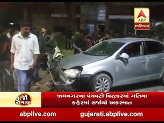 જામનગરઃ પૂરપાટ આવતી કાર ડિવાઇડર સાથે ધડાકાભેર અથડાઇ, જુઓ વીડિયો