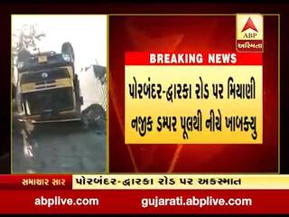 પોરબંદરઃ મિયાણી નજીક પૂલ પરથી ડમ્પર નીચે ખાબક્યું, જુઓ વીડિયો