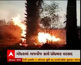 ગોધરા: દરૂણીયા ગામના ખેતરમાં ઝાડ પર વિજળી પડતા ઝાડમાં લાગી આગ