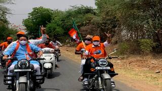 પંચમહાલના મોરવા હડફ પેટા ચૂંટણીના પ્રચારમાં ભાજપ દ્ધારા બાઇક રેલીનું આયોજન કરવામાં આવ્યું હતું. રાજ્યમાં એક તરફ કોરોનાના કેસમાં સતત વધારો થઇ રહ્યો છે ત્યારે ભાજપના જ નેતાઓએ સરકારના નિયમોનો ભંગ કરી બાઇક રેલીનું આયોજન કર્યું હતું. બાઇક રેલીમાં કાર્યકરો માસ્ક વિના જોવા મળ્યા હતા. કોરોનાના કહેર વચ્ચે ભાજપે બાઇક રેલી કાઢી હતી. ભાજપની રેલી વિરુદ્ધ કોઇ કાર્યવાહી કરવામાં ના આવતા અનેક સવાલો ઉભા થયા છે.