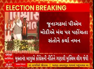 PM Modi In Junagadh । જૂનાગઢમાં પીએમ મોદીએ મંચ પર પહોંચતા સંતોને કર્યા નમન