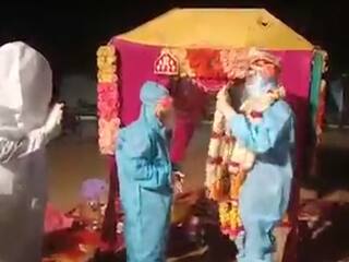 કોરોના મહામારીમાં થઇ રહેલા લગ્નમાં મહેમાનોની સંખ્યાને લઇને સરકાર સતત દિશાનિર્દેશ જાહેર કરી રહી છે ત્યારે સોશિયલ મીડિયા પર એક લગ્નનો વીડિયો વાયરલ થઇ રહ્યો છે જેમાં PPE કિટ પહેરીને વર અને કન્યા ફેરા ફરી રહ્યા છે. એટલું જ નહી લગ્ન કરાવનાર પંડિત અને કન્યાદાન કરનારા માતાપિતાએ પણ પીપીઇ કિટ પહેરી હતી. વાસ્તવમાં આ વીડિયો રાજસ્થાનના બારાં જિલ્લાનો છે. જ્યાં શાહબાદ તાલુકાના કેલવાડા ગામમાં કોવિડ કેર સેન્ટરમાં લગ્ન યોજાયા હતા. વાસ્તવમાં થોડા દિવસ અગાઉ યુવતીને કોરોના થયો હતો. જેથી પરિવારજનોએ વહીવટીતંત્રની મંજૂરી સાથે કોવિડ કેર સેન્ટરમાં આ રીતે લગ્ન કરવાનો નિર્ણય લીધો હતો.