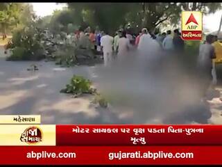 મહેસાણા: મોટરસાઈકલ પર વૃક્ષ ધરાશાયી થતા પિતા-પુત્રનું મોત, જુઓ વીડિયો