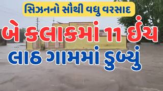 લાઠ ગામમાં બે કલાકમાં 11 ઈંચ વરસાદ ખાબકતા રસ્તાઓ પર નદી જેવો માહોલ જોવા મળી રહ્યો છે. ધોધમાર વરસાદના કારણે સમગ્ર લાઠ ગામમાં વરસાદી પાણી ફરી વળ્યા છે. ભારે વરસાદથી ખેતરોમાં પાણી ભરાઈ ગયા છે.