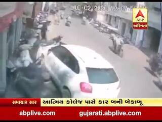 રાજકોટમાં કાર બેકાબૂ બની, પાર્કિંગમાં પડેલા વાહનો સાથે અથડાઇ, જુઓ વીડિયો