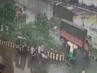 રાજકોટના આજીડેમ ચોકડી પાસે ઓવરબ્રિજની દીવાલ ધરાશાયી, જુઓ CCTV