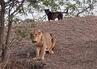 સિંહ ભાગ્યોઃ ખેતરમાં કૂતરો પાછળ પડતા સિંહ ભાગ્યો, વીડિયો વાયરલ