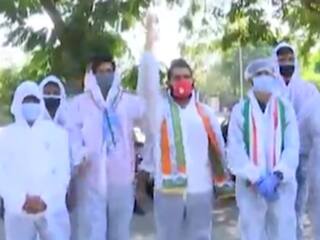 સૌરાષ્ટ્ર યુનિવર્સિટીની પરીક્ષાઓ મોકૂફ રાખવા NSUIના કાર્યકરોએ PPE કિટ પહેરી કર્યો વિરોધ