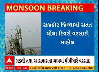 રાજ્યમાં અત્યારે સમગ્ર જિલ્લાઓમાં વરસાદી માહોલ જોવા મળી રહ્યો છે, રાજ્યમાં વરસાદી માહોલ વચ્ચે રાજકોટ જિલ્લામાં પણ વરસાદી માહોલ જોવા મળ્યો જેમાં રાજકોટ શહેર સહીત ગ્રામ્ય વિસ્તારોમાં પણ વરસાદી માહોલ જોવા મળ્યો, રાજકોટ જિલ્લામાં સતત ચોથા દિવસે વરસાદી માહોલ જોવા મળ્યો, રાજકોટ જિલ્લાના જસદણ તાલુકાના ગ્રામ્ય વિસ્તારોમાં પણ વરસાદી માહોલ જોવા મળ્યો, રાજકોટના ભડલી તથા આસપાસના ગામોમાં પણ ધીમીધારે વરસાદ જોવા મળ્યો, સમગ્ર રાજકોટમાં વાવણીલાયક વરસાદ વરસ્યો, જેના કારણે ખેડૂતોમાં ખુશીનો માહોલ જોવા મળી રહ્યો છે, જિલ્લામાં વરસાદી માહોલ વચ્ચે ખેતરો પાણીથી ભરાયેલા જોવા મળી રહ્યા છે, ઘણા દિવસોથી અહીંયા બપોર બાદ વરસાદ જોવા મળી રહ્યો છે જેના કારણે સ્થાનિકો સહીત ખેડૂતોમાં ખુશીનો માહોલ છે.
