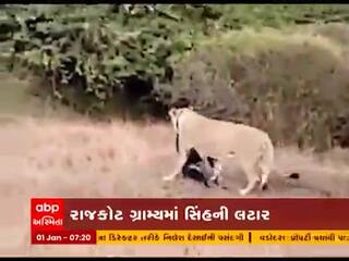 રાજકોટઃ ગોંડલના રિબડા ગામમાં સિંહે પશુનું કર્યું મારણ, જુઓ વીડિયો