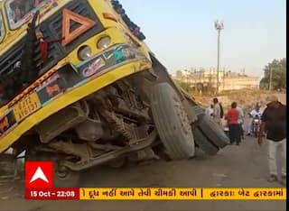 રાજકોટ: કોઠારીયા વિસ્તારમાં વગર વરસાદે પડેલા ભુવામાં ટ્રક ફસાયો