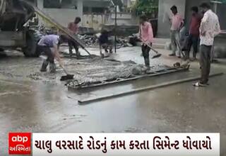 Rajkot | લ્યો બોલો વરસાદ ચાલુ છે અને બનાવાઈ રહ્યો છે રોડ, સિમેન્ટ ધોવાયો; જુઓ વીડિયો