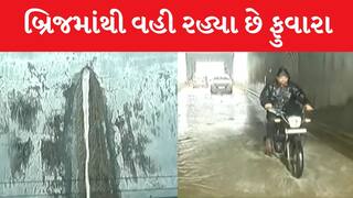 આ જુઓ રાજકોટનો બ્રિજ જ્યાં વરસાદ પડતાની સાથે ભરાયા પાણી અને વહી રહ્યા છે ફુવારા