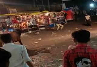 મેળામાં ઘુસી ગયો સાંઢ, લોકોને પણ ભગાડ્યા ઊભી પૂંછડીએ; Watch Video