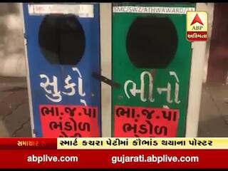 સુરતઃ સ્માર્ટ કચરા પેટી પર લાગ્યા ભાજપ ભંડોળ પેટીના પોસ્ટર, જુઓ વીડિયો