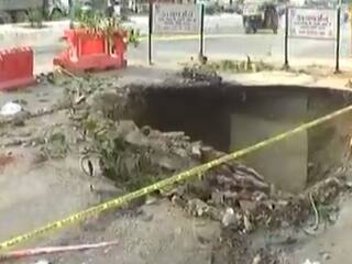 વડોદરના પરિવાર ચાર રસ્તા પાસે પડ્યો ભૂવો, જુઓ વીડિયો