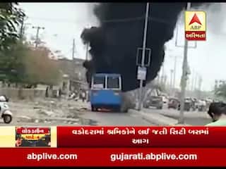 વડોદરામાં શ્રમિકોને લઇ જતી સિટી બસમાં આગ લાગી, જુઓ વીડિયો