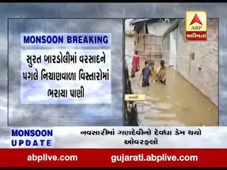 સુરત બારડોલીમાં વરસાદને પગલે નીચાણવાળા વિસ્તારોમાં ભરાયા પાણી, જુઓ વીડિયો