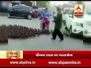રોચક દુનિયા: ચીનના રસ્તા પર જોવા મળી બતકસેના, જુઓ વીડિયો